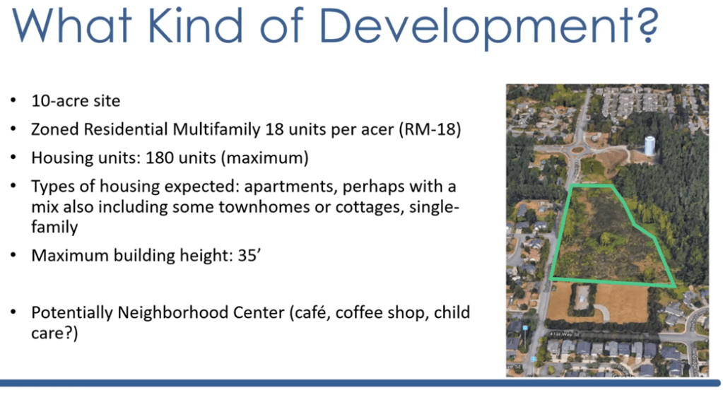 Amy said the area is a triangle of 272 acres, bounded on the West by Cooper point Rd the east by Black Lake and Division and in the north a boundary that will probably need to be clarified.